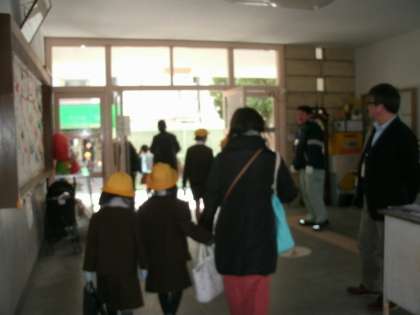 避難訓練後は、教室に戻り、保護者への引き渡し訓練を行いました。