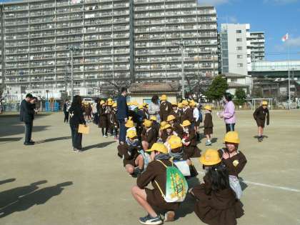 保護者への引き渡し訓練終了後、いきいき活動に参加する児童は、いきいき教室へ、地区別集団下校訓練に参加する児童は、担当の先生の引率で集団下校をしました。