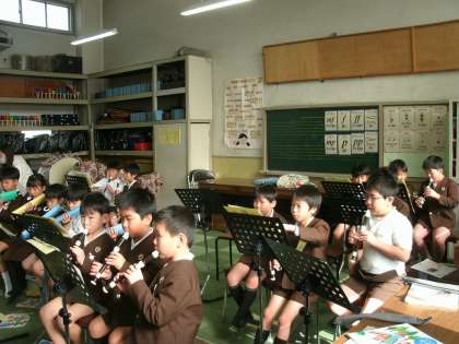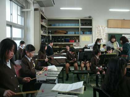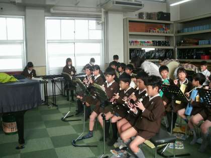 3年生は、音楽室で合奏の練習をしていました。