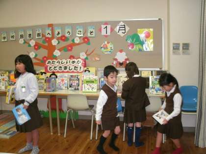 毎週木曜日は、学校図書館補助員さんが終日在室して、本選びのアドバイスなどをしてくださいます。