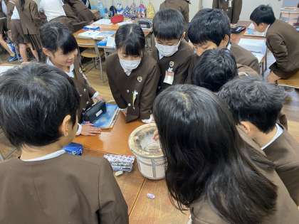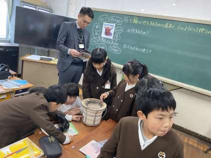 七輪は何をするための道具で、どのようにして使うのか、実物を見ながら班のみんなと考えていました。