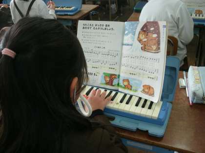 鍵盤ハーモニカで「こぐまの二月」を演奏していました。