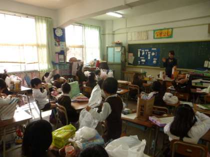 1年生は、図画工作の時間に「どうぶつの森パーティー」の工作を作っていました。