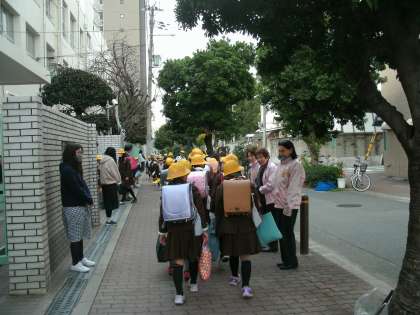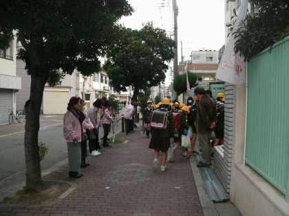 毎月第1・第3月曜日の朝は、港区更生保護女性会の皆さんによる「愛の一声運動」が行われます。寒い中、ありがとうございます。
