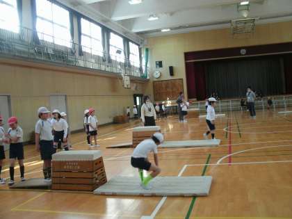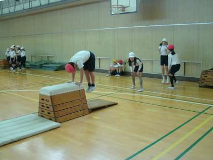 跳び箱運動をしていました。