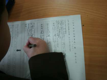 じゃんけんを教える練習のため、ワークシートにじゃんけんの仕組みについてまとめていました。