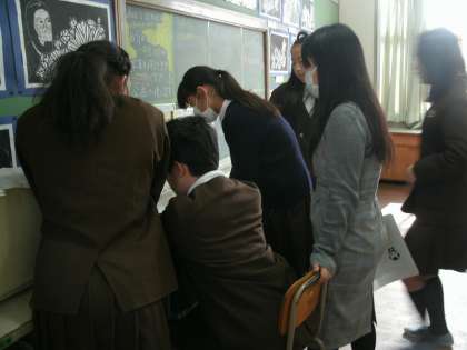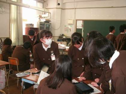 6年2組は、平和学習の発表の最終チェックをしていました。