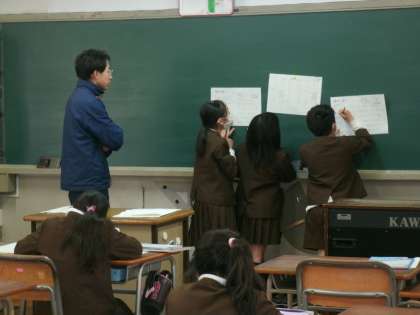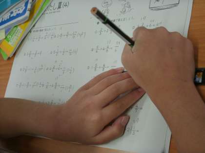 分数のたし算・ひき算の練習プリントで計算練習をしていました。