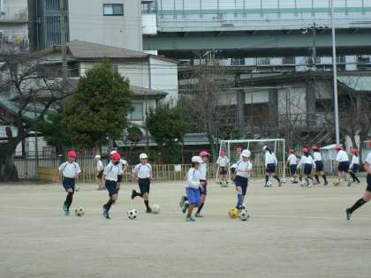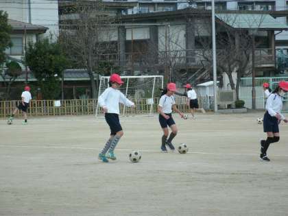サッカーのドリブル練習をしていました。