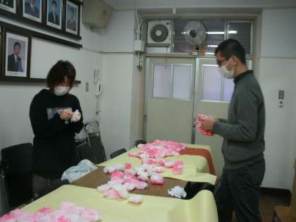 みんなで作った桜の花が集まって、一足早く満開になりました。
