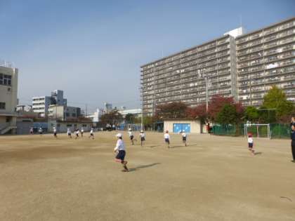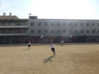 2年生は、体育の時間におにごっこをしていました。