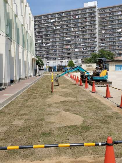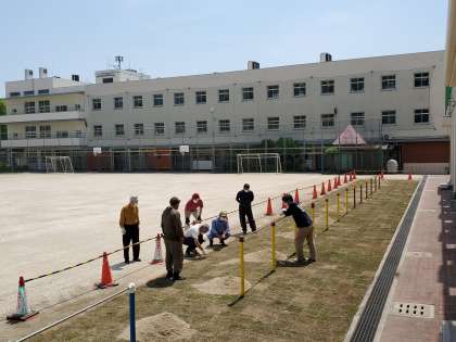 磯路地域の芝生運営委員会の皆さんと造園業者の方々が集まって