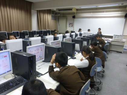 4年生は国語の学習で「仕事リーフレット」を作っています。仕事の内容について、パソコン室でインターネットをつかって調べていました。