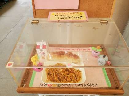 パン(個包装)と牛乳(パック)とおかず一品(スパゲッティ)