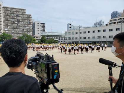 運動場いっぱいに広がった全校児童を見て