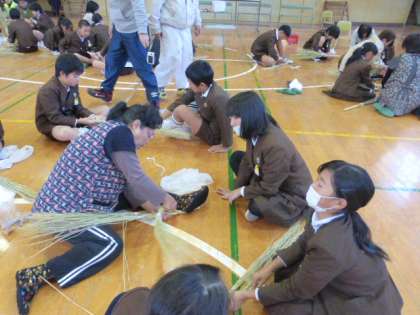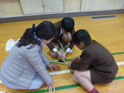地域の方々にお越しいただいて、6年生はお正月にかざるしめなわの作り方を教えていただきました。