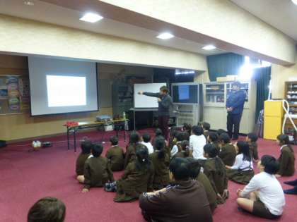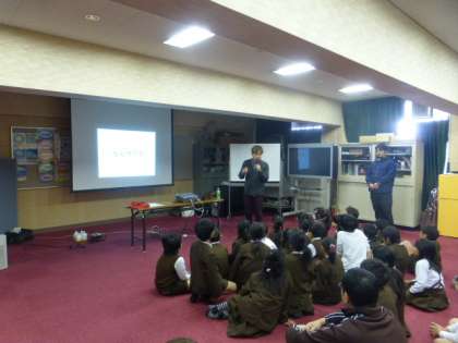 サンフェイスの方々にお越しいただいて、3年生と4年生は障がいについて教えていただきました。