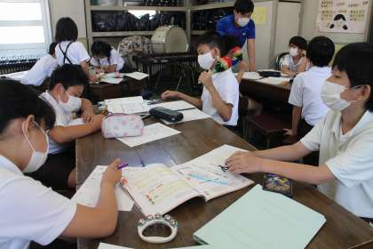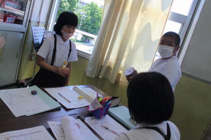 5−2は音楽で打楽器アンサンブルをしています♪