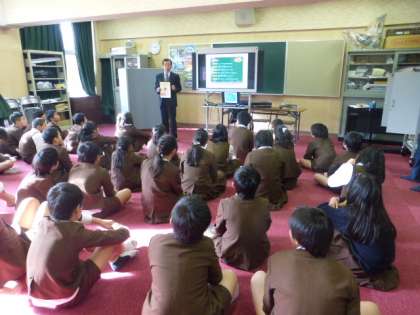 港警察署の方にお越しいただき、携帯電話の安全な使い方や夜遅くに出歩いてはいけないことなどを教えていただきました。