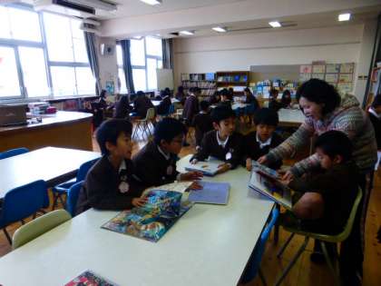 1月14日(水)毎日厳しい寒さが続きますが、今日はお昼に少しだけ暖かくなりそうです。1年生は、新しい本が入った図書室に行って本を借りたり、読んだりしていました。