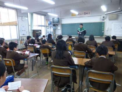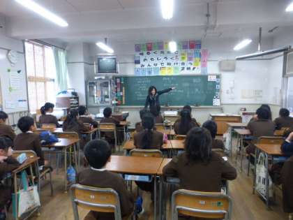教室に戻って、担任の先生から阪神大震災や東日本大震災などの話を聞き、津波や地震のそなえることの大切さを学びました。