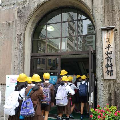 平和記念公園の対岸に今も本川小学校があり、活動中もチャイムが聞こえてきました