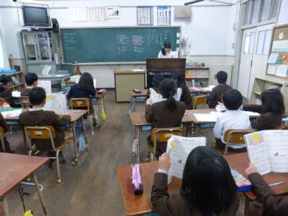 1月20日(火)今日は大寒です。それでも日が出ている間は暖かかったのですが、日がかげるとさすがに寒く感じました。2年生は、音楽の時間に「あの青い空のように」を歌っていました。