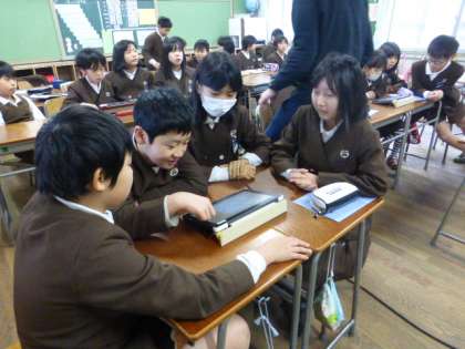 1月23日(金)大寒が過ぎ、日差しが少しずつ暖かくなってきました。まだまだ厳しい寒さが続きます。風邪やインフルエンザには、どうかお気を付けください。来年度から教室にタブレット端末が入る予定になっています。5年生は、ひとあし先に図画工作科の学習で活用しています。