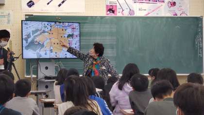 修学旅行直前の10月7日に、6年生に戦争体験をお話しに来てくださった辻和子さんが