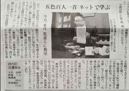 五色百人一首オンライン交流会の様子が読売新聞に紹介されました(12/6大阪版)