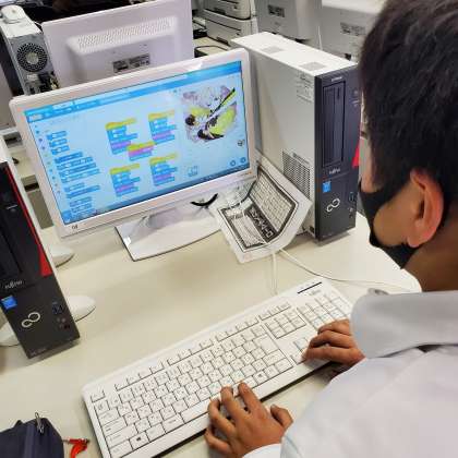 パソコンクラブではプログラミング「スクラッチ」の見学
