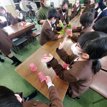 工作クラブで、キーホルダー作りの見学
