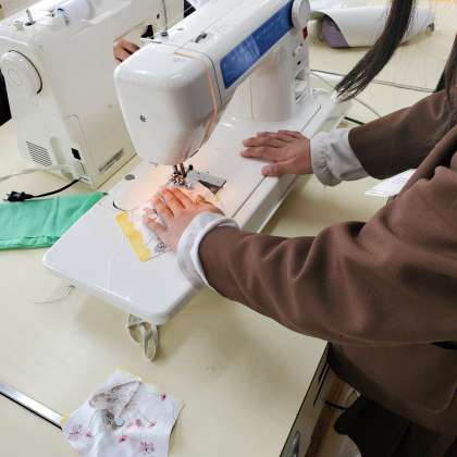 家庭科クラブでは、ミシンでマスク作りを見学