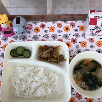 5/7の給食は「ホイコウロー、中華スープ、きゅうりのピリ辛あえ、ごはん、牛乳」でした。ホイコウローは四川料理のひとつです。中国料理では、材料を煮た後に、鍋に戻し、いためて仕上げることを「回す鍋」と書いて「ホイコウ」といいます。また豚肉のことを「ロー」というので「ホイコウロー」という名前がついたそうです。