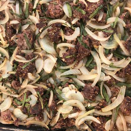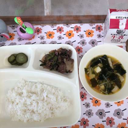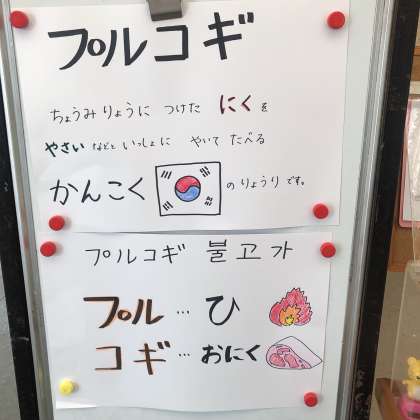 5/21の給食は「プルコギ、とうふのスープ、きゅうりの甘酢づけ、ごはん、牛乳」でした。「プルコギ」は調味料につけた肉を野菜などと一緒に焼いて食べる韓国の料理です。