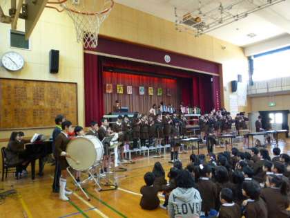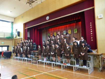 6年生は、「世界に一つだけの花」の合奏と長なわとびをしました。お礼の言葉と合奏の様子です。