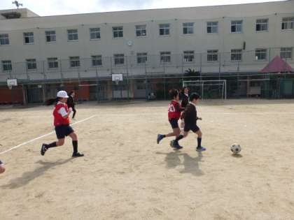 3月11日(水)東日本大震災が発生して4年になります。学校では、半旗を掲げて午後2時46分に黙とうをいたします。今朝も昨日に引き続き、寒い日となりました。4年生は体育の時間に、運動場でサッカーをしていました。