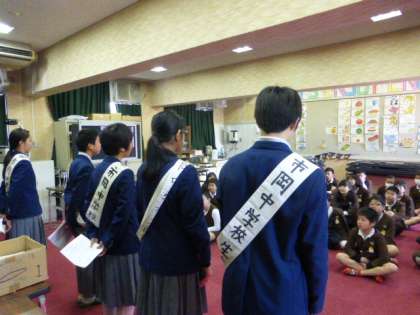 市岡中学校生徒会のみなさんが、本校に来てくださいました。中学校生活について6年生に教えてくれました。生徒会のみなさんは、はきはきとした話し方でとても立派な態度でした。