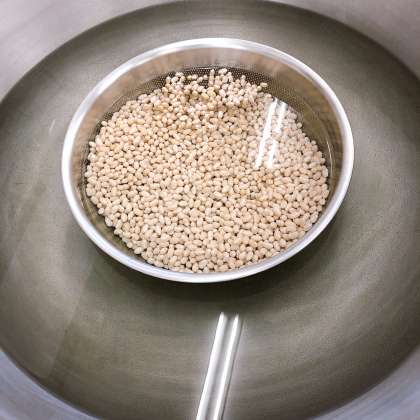 てぼ豆は、熱湯に20分程度つけてから、弱火で柔らかくなるまで煮て使用しています。