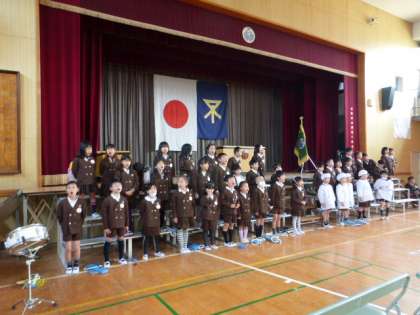 3月17日(火)朝方は少し寒かったものの、次第に気温があがり暖かくなってきました。1年生は、今度の入学式に向けて新1年生を迎える練習をしています。