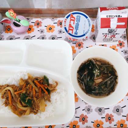 6/18の給食は「和風カレーどんぶり、もずくとオクラのとろり汁、ヨーグルト、牛乳」でした。おととい『オクラ』に苦戦していた子たちが今日の『オクラ』は、がんばって食べていました!
