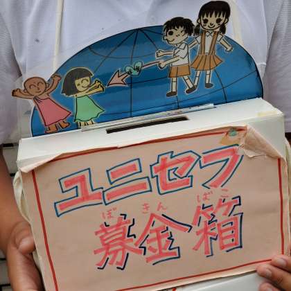 5年生が「世界の子どもたちは今」の学習のまとめとして、ユニセフ募金に取り組んでいます