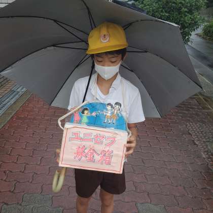 5年生の総合的な学習「世界の子どもたちは今」の発表を受けて、児童会計画委員の子どもたちが、毎朝登校時に、ユニセフ募金活動を続けています