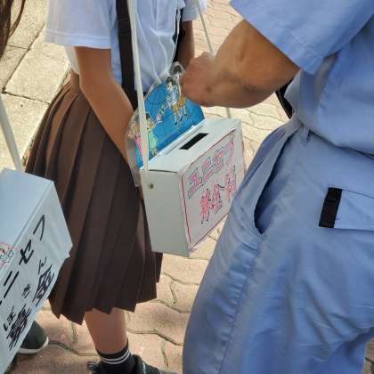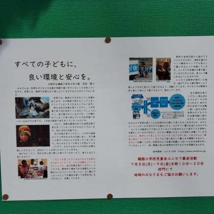 5年生が調べ学習でまとめたレポートを、地域町会の掲示板に貼っていただき、募金の呼びかけもしました