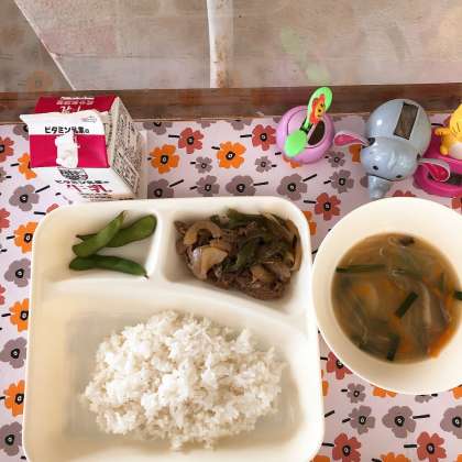 9/22の給食は「プルコギ、トック、えだまめ、ごはん、牛乳」でした。