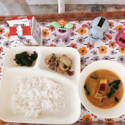 9/30の給食は「豚肉の甘辛焼き、みそしる、オクラのおかかいため、ごはん、牛乳」でした。