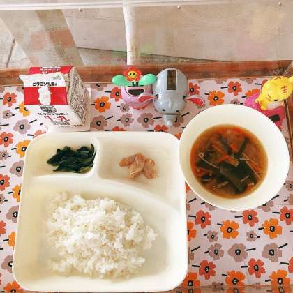 10/22の給食は「鶏肉のゆず塩焼き、ソーキ汁、ほうれんそうのおひたし、ごはん、牛乳」でした。小学校、中学校あわせて約30キロのほうれんそうが届いていました。写真2枚目はほうれんそうの写真です。