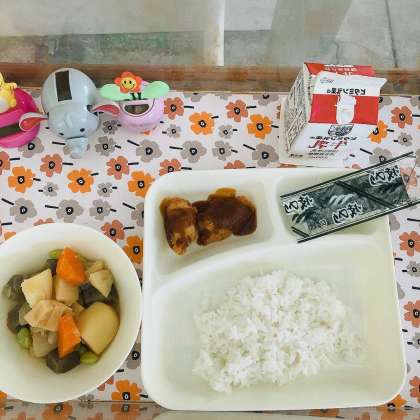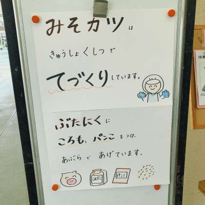 10/26の給食は「みそカツ、じゃがいもと野菜の煮物、焼きのり、ごはん、牛乳」でした。