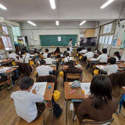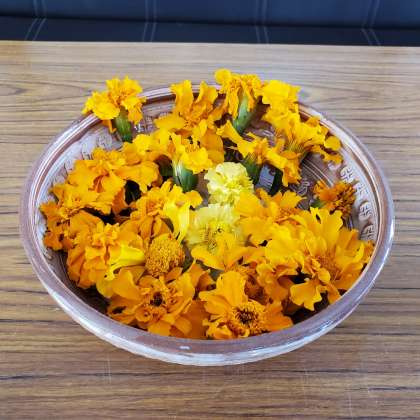 学習園のマリーゴールドを一人一輪ずつ切り取って