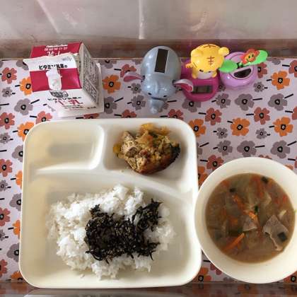 11/30の給食は「千草焼き、みそ汁、ごまひじき、ごはん、牛乳」でした。
